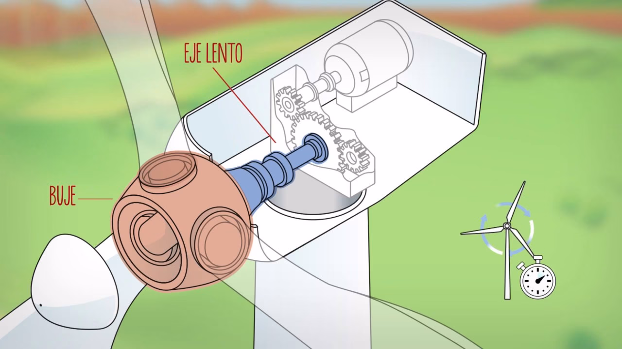 El generador es el encargado de convertir la energía mecánica del rotor en energía eléctrica. Está compuesto por un eje y un conjunto de imanes y bobinas que, al girar, generan una corriente eléctrica.
